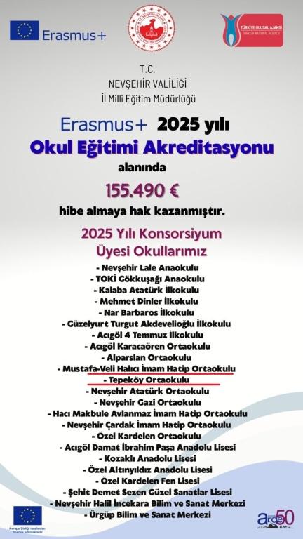 Okulumuz 2025 Erasmus okul eğitimi alanında akreditasyon almaya hak kazanmıştır